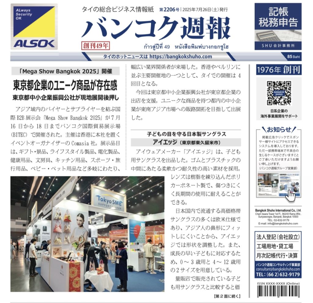2025年7月開催の「Mega Show Bankok 2025」の記事がバンコク週報(20250726)に掲載されました。 投稿日 2025年8月16日 著者 peakmaki カテゴリー 未分類 Screenshot こちらは展示会の様子で、掲載されてはいません。